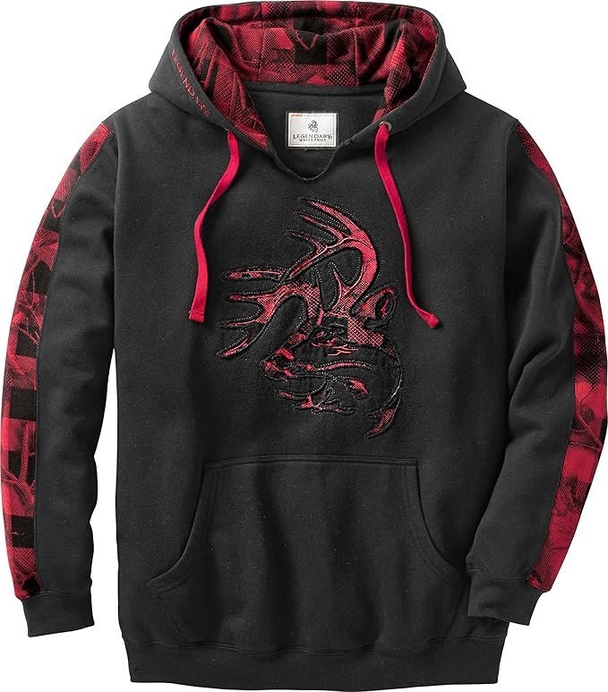 Warm, comfortable cotton-blend fleece pullover featuring a drawstring hood, kangaroo pocket, and a distinctive all-over camouflage plaid pattern.