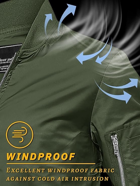 - Full zipper stand collar bomber jacket, The zipper head is on the left
